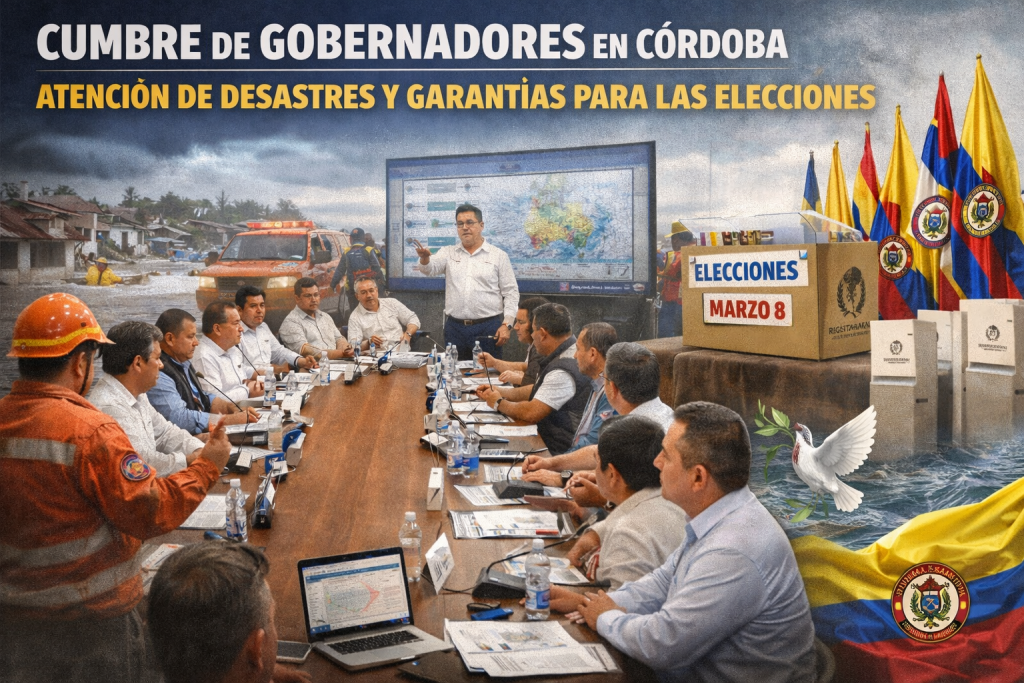 Los gobernadores del país se darán cita este miércoles y jueves en el departamento de Córdoba para revisar la respuesta institucional frente a la temporada de lluvias y coordinar acciones de cara a la jornada electoral del 8 de marzo.