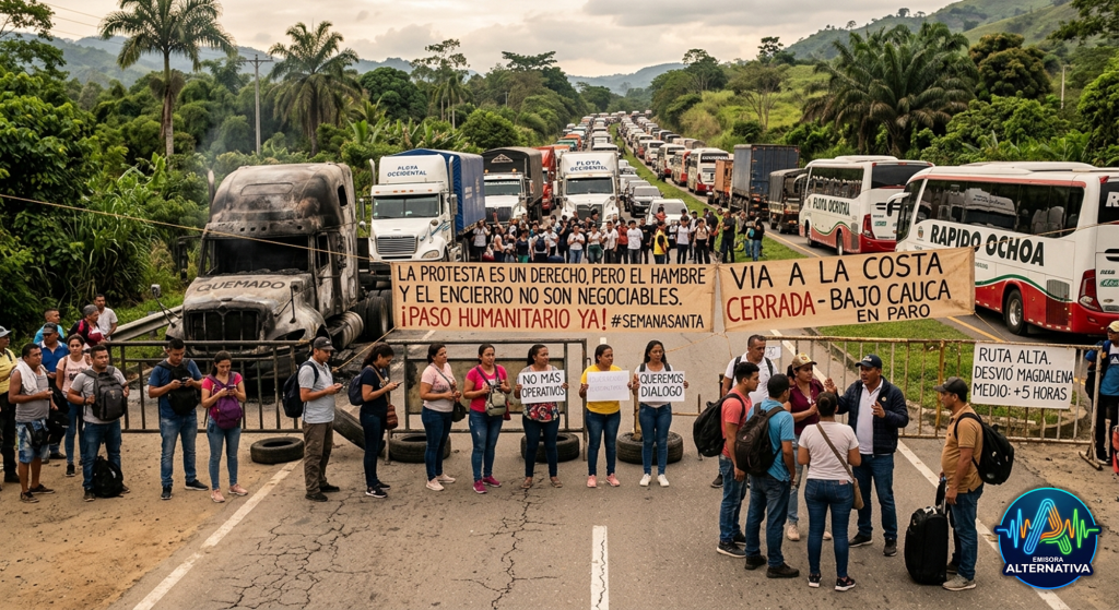 Puntos críticos: Los bloqueos más fuertes se concentran en el Bajo Cauca antioqueño y el sur de Córdoba. Tomen nota si van a viajar, porque los sectores de Caucasia, Cáceres (punto Jardín de Tamaná) y la vía Zaragoza-Segovia presentan cierres intermitentes o totales.